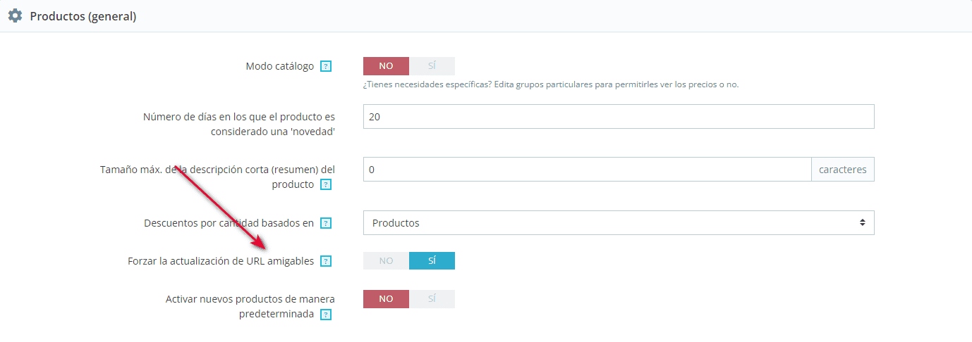 Para actualizar rápidamente las URL simplificadas de todos sus productos, consulte el siguiente artículo.