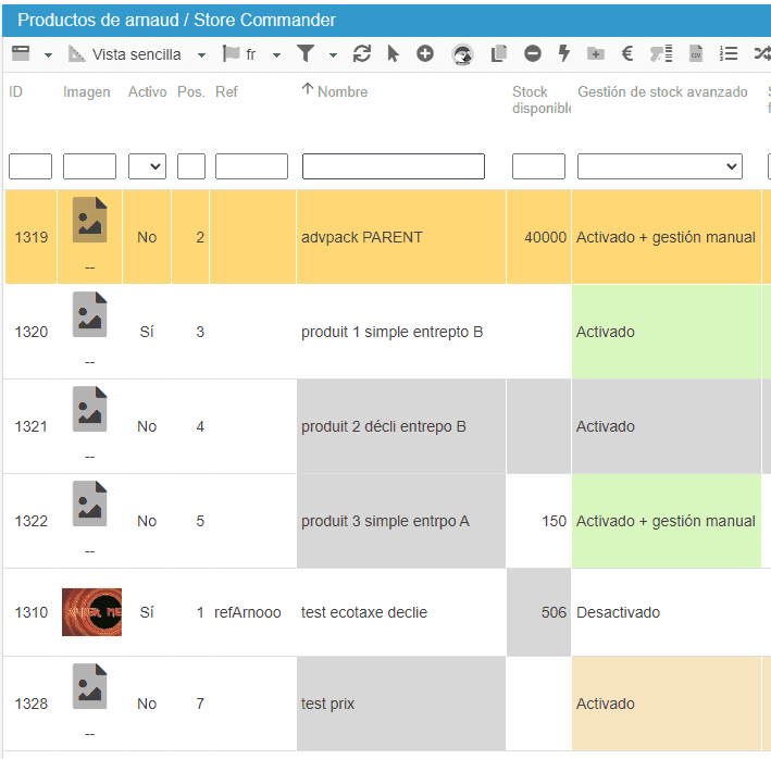 Tenga presente que el color utilizado se aplica igualmente a las otras 3 columnas (cantidad) vinculadas con la gestión avanzada de stocks.