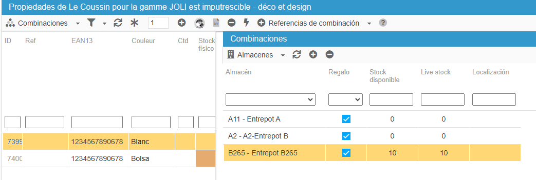 La administración de ubicaciones y combinaciones de productos en Store Commander depende de su versión de PrestaShop, así como del modo de administración de inventario avanzado elegido para los productos y las combinaciones.