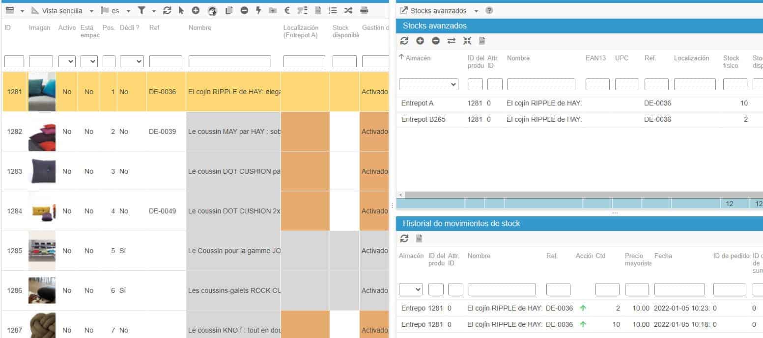 La rejilla de existencias avanzadas de Store Commander le permite filtrar por almacén para que pueda tener una visión global de las existencias de todos los productos de la tienda para un almacén específico.