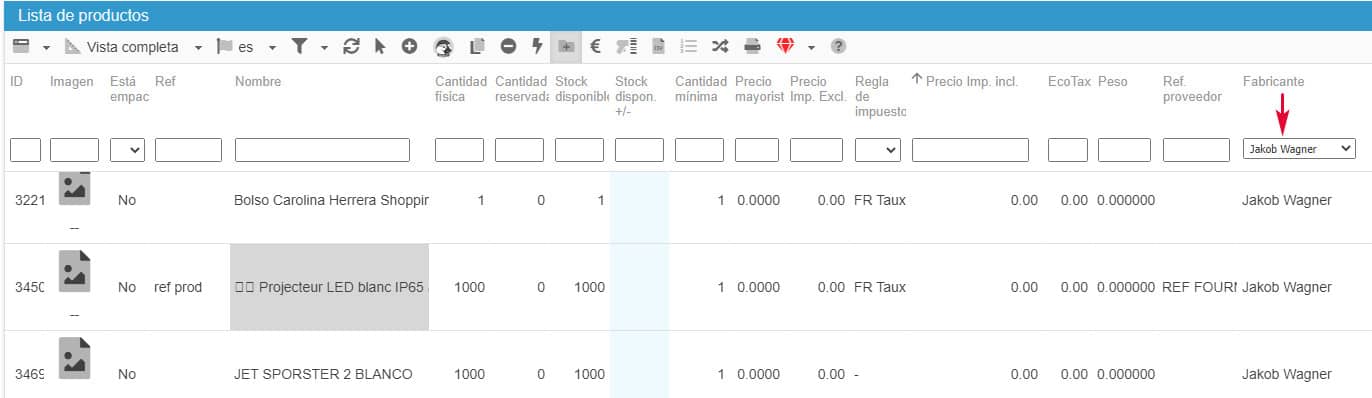 En la interfaz de Store Commander, muestre por ejemplo los productos de un mismo fabricante en la vista Referencia o la vista Completa.