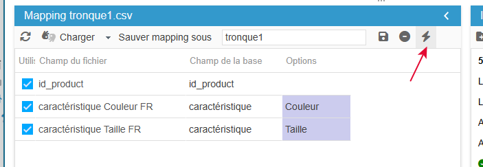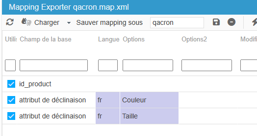 L'inverse est bien sûr possible en suivant le même principe : exporter les champs des caractéristiques, et mappez les avec les champs des attributs de déclinaisons.