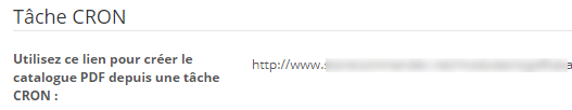 Le module catalogue PDF créera un lien spécifique pour chaque catalogue. Ce lien est affiché en bas de page du formulaire de configuration. Il faudra alors créer autant de tâches CRON que de catalogues, en espaçant ces créations dans le temps pour éviter une surcharge du serveur.