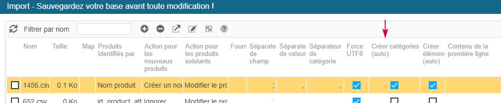 Le fait de cocher l'option 'Créer catégories (auto)' signifie que toutes les catégories indiquées dans le fichier CSV seront créées, qu'elles existent ou non dans le catalogue. Le processus d'import ne vérifie pas l'arborescence existante, et créé les catégories. Il faudra donc bien vous assurer que les catégories indiquées dans votre fichier CSV n'existent pas si vous cochez cette option, sinon vous aurez des doublons dans votre arborescence.