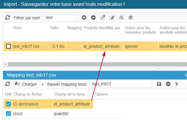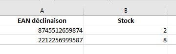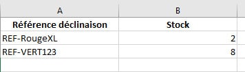 Mettre à jour le stock des déclinaisons par import CSV