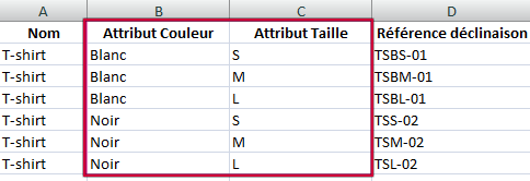 La colonne du fichier CSV contient plusieurs attributs dans la même cellule, séparés par une virgule (si le séparateur de valeurs utilisé dans votre configuration d'import est la virgule).