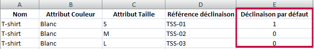La colonne du fichier CSV contiendra la valeur 0 (non) ou 1 (oui).