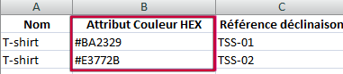 Ce champ correspond au code couleur HEX (RGB) qui sera inséré dans la colonne correspondante du fichier CSV.