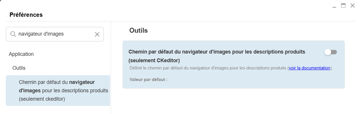 Lorsque vous ajoutez une image dans la description d'un produit, l'accès au serveur s'ouvre automatiquement sur le répertoire /img/ de votre boutique PrestaShop.