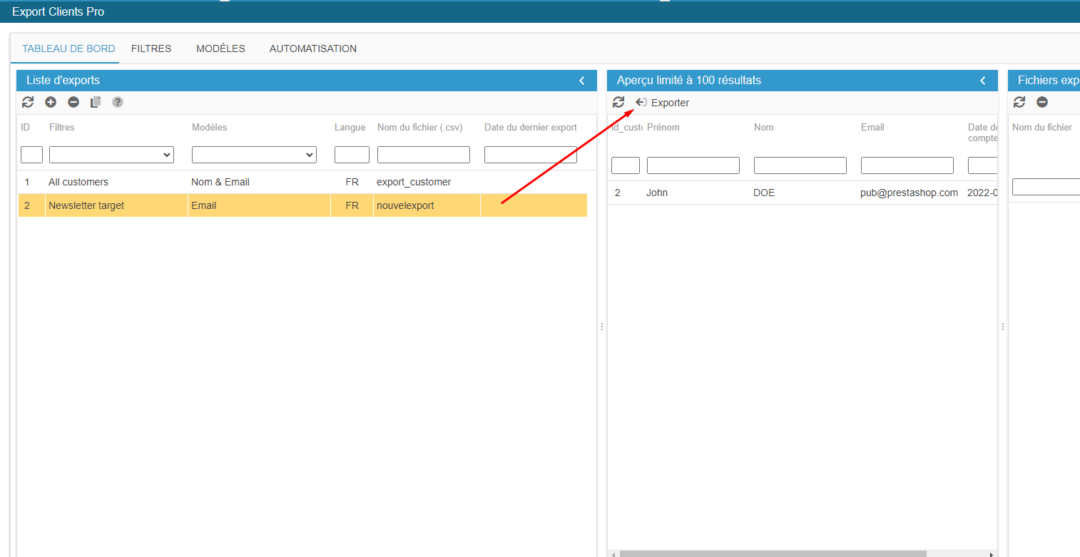 3 - Générer le fichier d'export