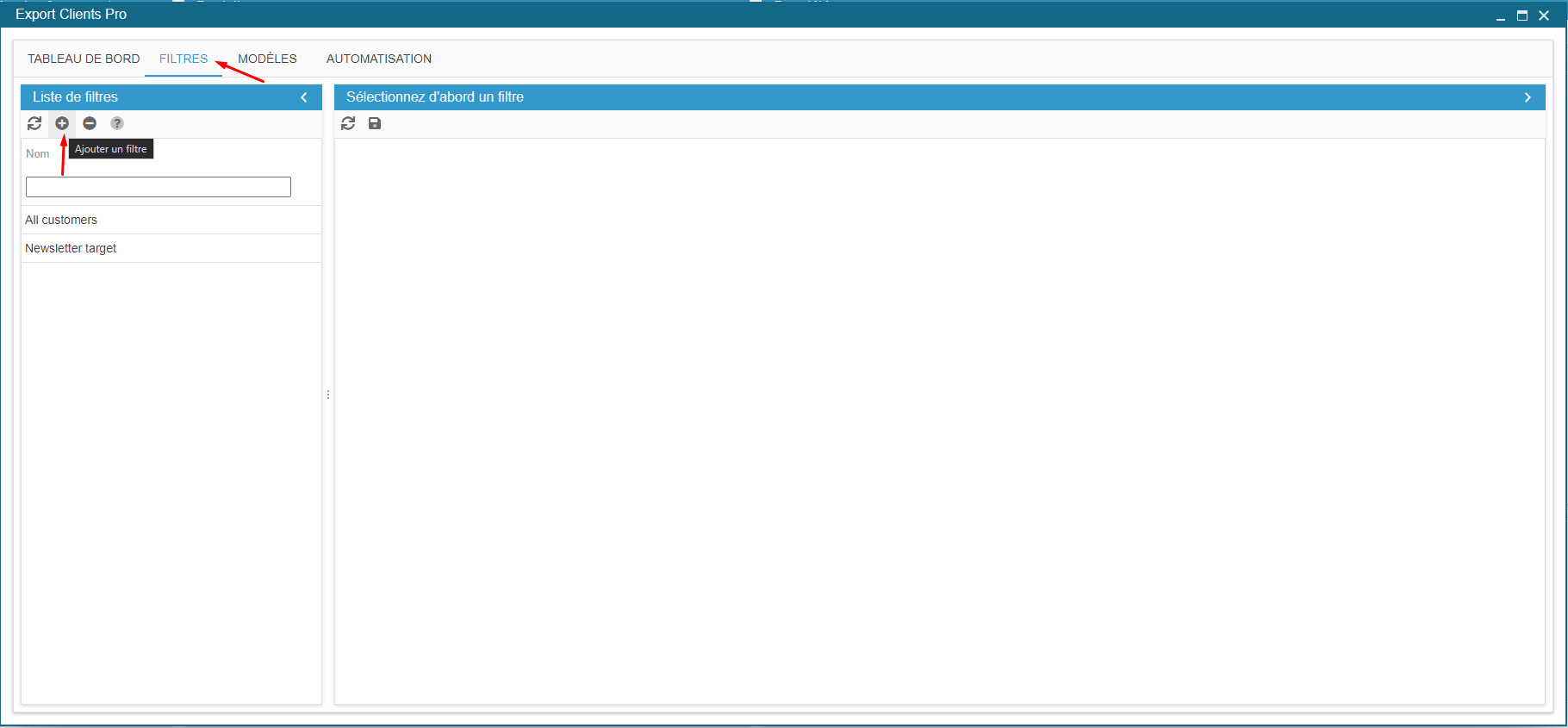 Il s'agit de la liste des clients filtrés et le modèle d'export.