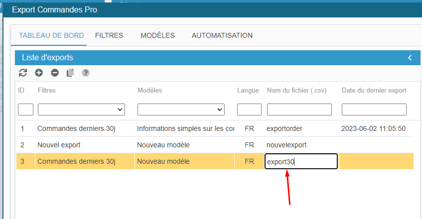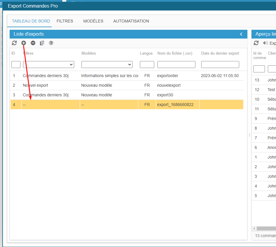 Rendez vous dans l'onglet FILTRES puis créez une liste de commandes filtrées en cliquant sur le bouton