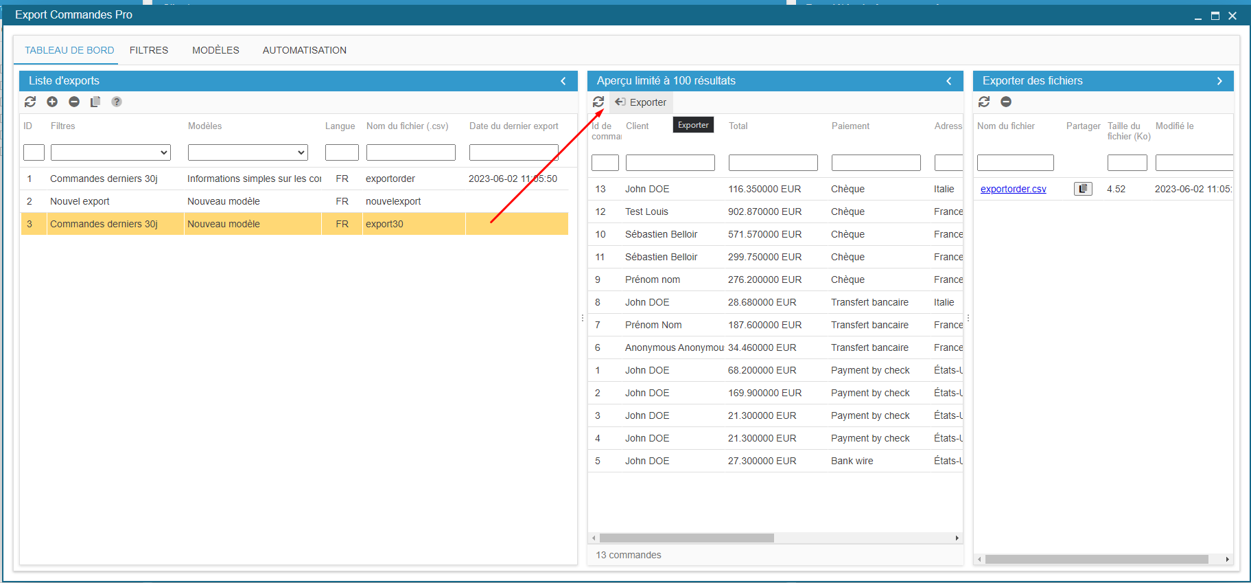 Avec Store Commander, vous pouvez générer un export de vos commandes rapidement et simplement via notre outil d'export commandes PRO (disponible dans nos abonnements SOLO+ & Multistores+).