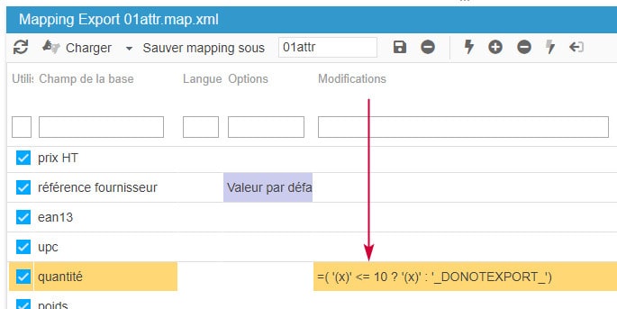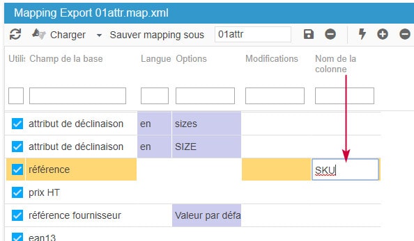 Vous pouvez aussi renommer les intitulés des colonnes si nécessaire (très utile pour les flux sur les places de marchés) :