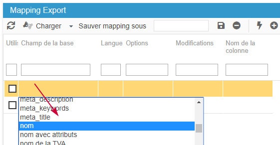 De retour dans le panneau principal, remplissez les colonnes les unes après les autres en double cliquant : mapping, catégories, nom du fichier à exporter, et les options souhaitées.