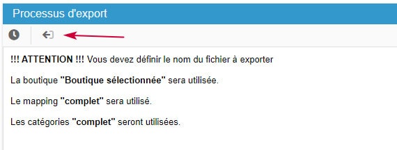 6. Lorsque l'export est terminé, cliquez sur le lien donné, ou sur le nom du fichier dans le panneau 'Fichiers exportés'.