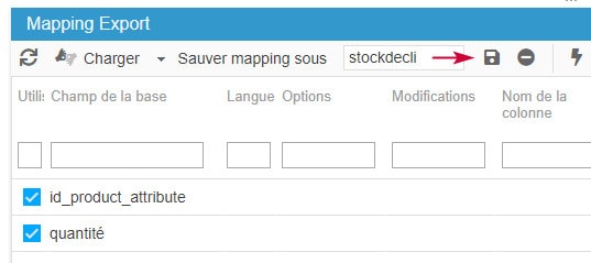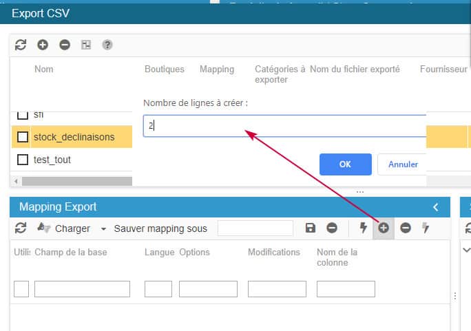 2. Créez le mapping en ajoutant le nombre de lignes (colonnes/champs) souhaités : identifiant + quantité