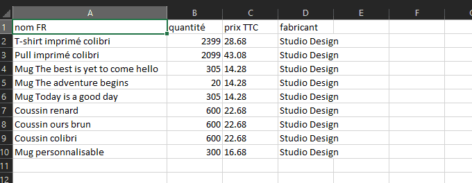 Dans notre exemple je veux exporter les produits de la marque "Studio Design".