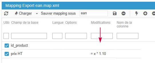 Vous pouvez inscrire une formule mathématique dans la colonne 'Modification' du mapping pour effectuer un calcul sur la valeur exportée.