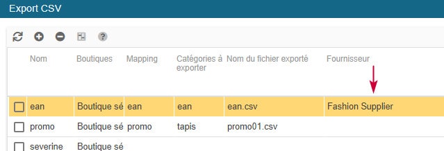 L'export CSV de Store Commander inclut un filtre 'fournisseur' qui vous permet d'exporter uniquement les produits associés à un fournisseur spécifique.