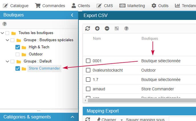Lorsque vous travaillez en mode multiboutiques, Store Commander pourra exporter vos produits pour chaque boutique individuellement.