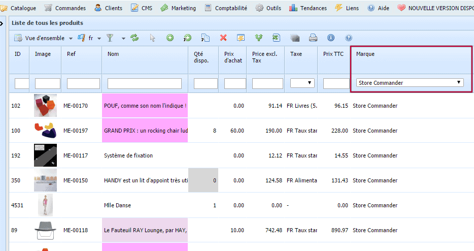 Notez que vous pouvez utiliser la même méthode de filtrage pour tout autre champs, comme afficher tous les produits associés à un fournisseur spécifique par exemple.