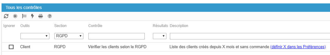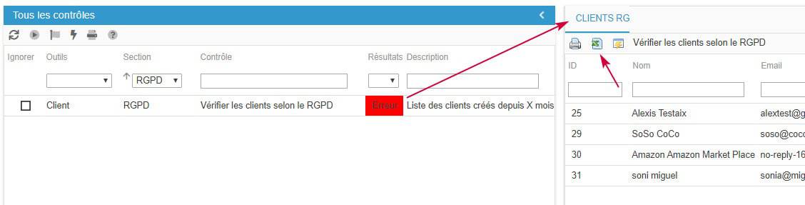 Lorsque vous avez lancé ce contrôle et que des clients sont trouvés, alors le résultat sera en 'Erreur' et la liste des clients correspondant s'affichera dans le panneau de droite.