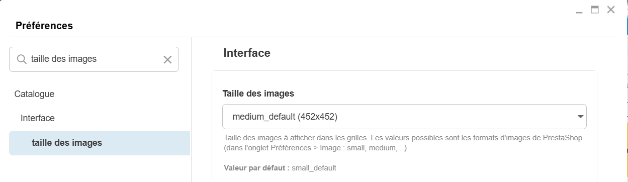 Les images affichées dans l'interface de Store Commander utilisent le format small_default.