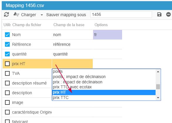 Après avoir sélectionné le fichier, configurez le mapping, en faisant correspondre les champs de la base avec les intitulés de votre fichier.