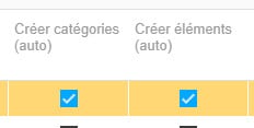 Cochez les options si votre import doit créer les catégories, et les éléments tels que les fournisseurs, fabricants, tags, caractéristiques :