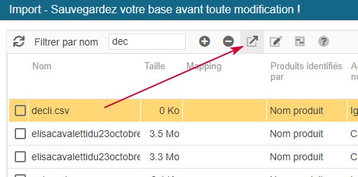 Vous pouvez ensuite effectuer des modifications sur ce fichier pour ensuite le recharger dans l'interface. Aucun besoin de supprimer la copie précédente, Store Commander remplacera le fichier automatiquement (à partir du moment où le nom du fichier est identique).