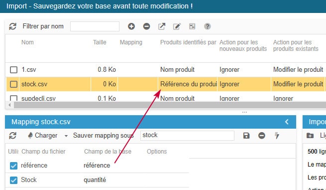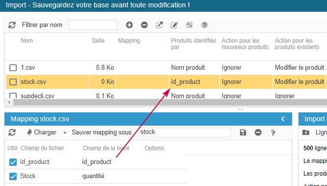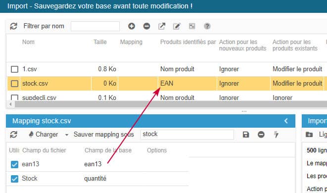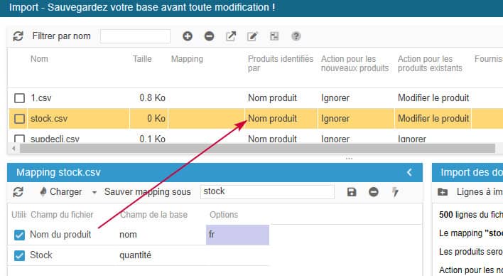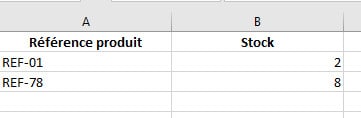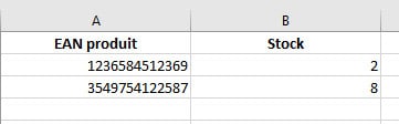 - l'identifiant du produit, c'est à dire le nom du produit, son ID, sa référence ou encore son code EAN13. L'important est que cet identifiant soit unique sur chaque produit (pas de doublon).