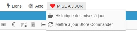 Lorsqu'une nouvelle mise à jour est disponible, vous êtes directement informé par une nouvelle icône en forme de coeur qui s'affiche sur la barre d'outils principale de l'interface de Store Commander.