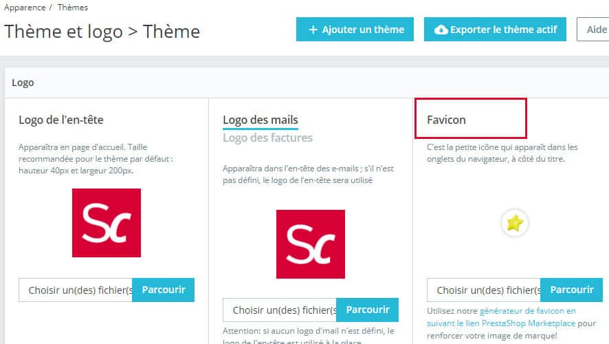 Il vous suffit d'ajouter votre image au format *.ico dans votre backoffice PrestaShop > Personnaliser > Apparence > Thème : section Favicon