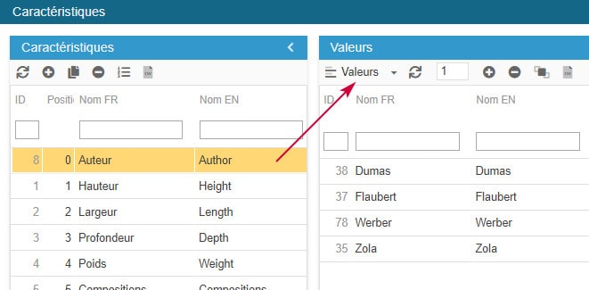 Avec Store Commander, par défaut, tous les groupes seront visibles dans la fenêtre de gestion des caractéristiques: Catalogue > Caractéristiques > Gestion des Caractéristiques