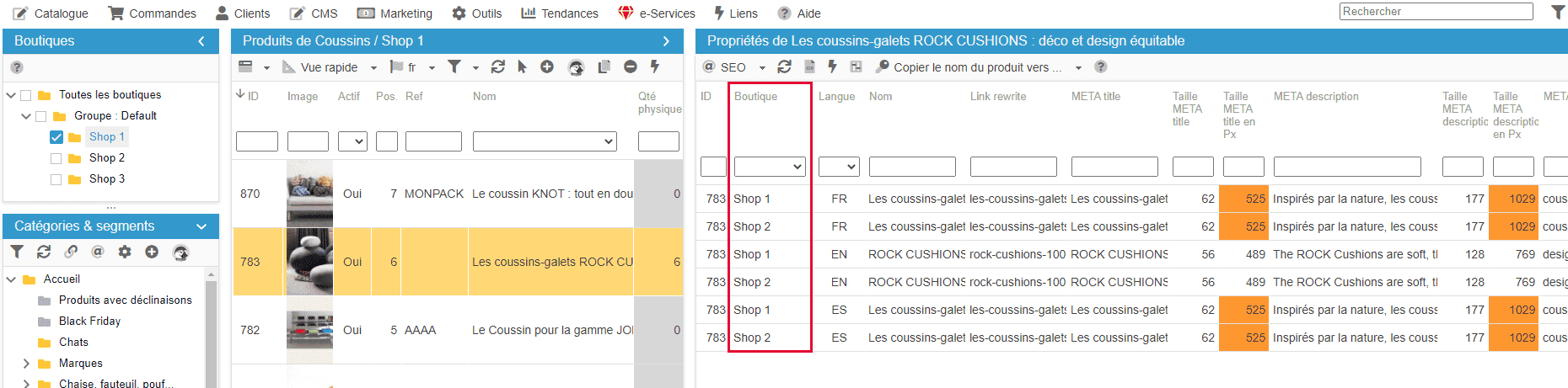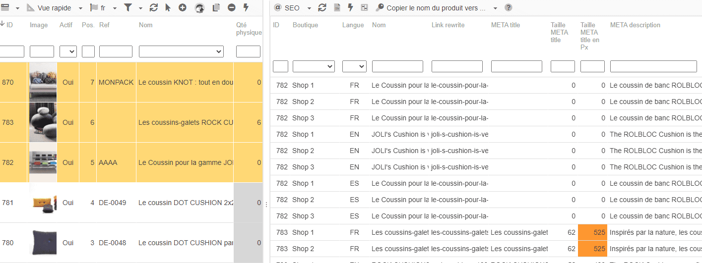 En effet, cette grille inclut une colonne 'boutique' qui permet d'identifier les informations du produit dans toutes vos boutiques - et toutes les langues si votre site propose plusieurs langues.
