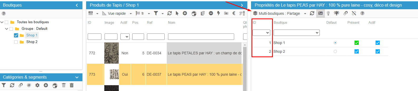 Lorsque vous travaillez en multi-boutiques, chaque boutique possède un identifiant unique : son ID.