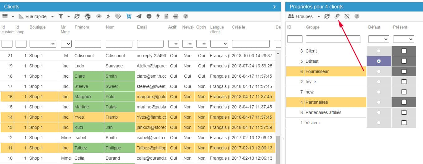 Sélectionnez les clients concernés pour ensuite cocher le(s) groupe(s) correspondant(s)