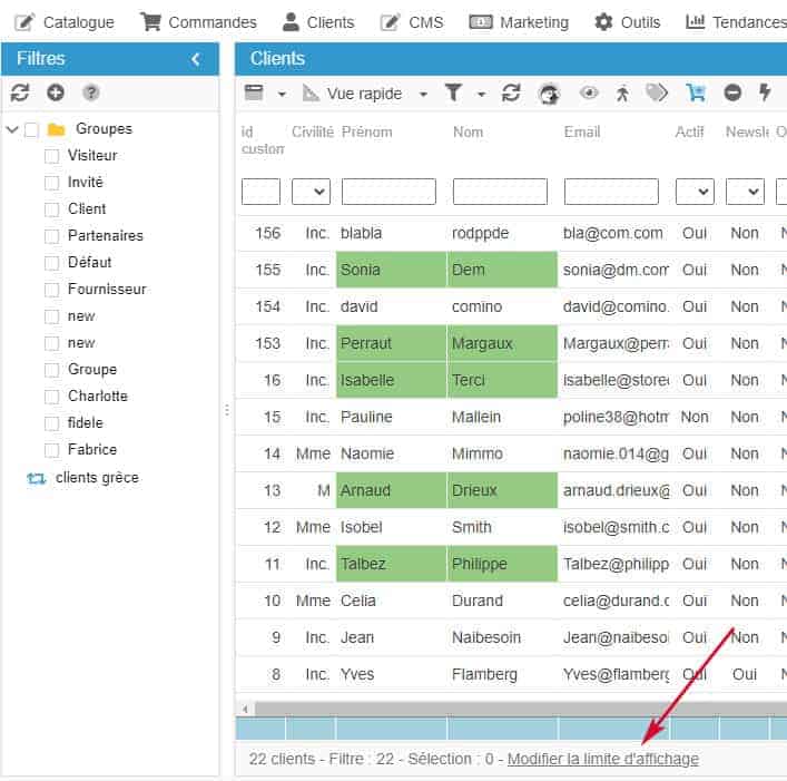 Par défaut, Store Commander affiche un maximum de 100 clients dans l'onglet principal dédié à la gestion des Clients.
