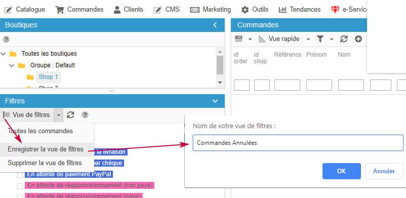 En effet, la colonne des filtres dans l'interface des Commandes de Store Commander vous permet d'enregistrer vos filtres afin de pouvoir les réutiliser à tout moment, sans avoir à répéter les mêmes manipulations pour afficher vos commandes.