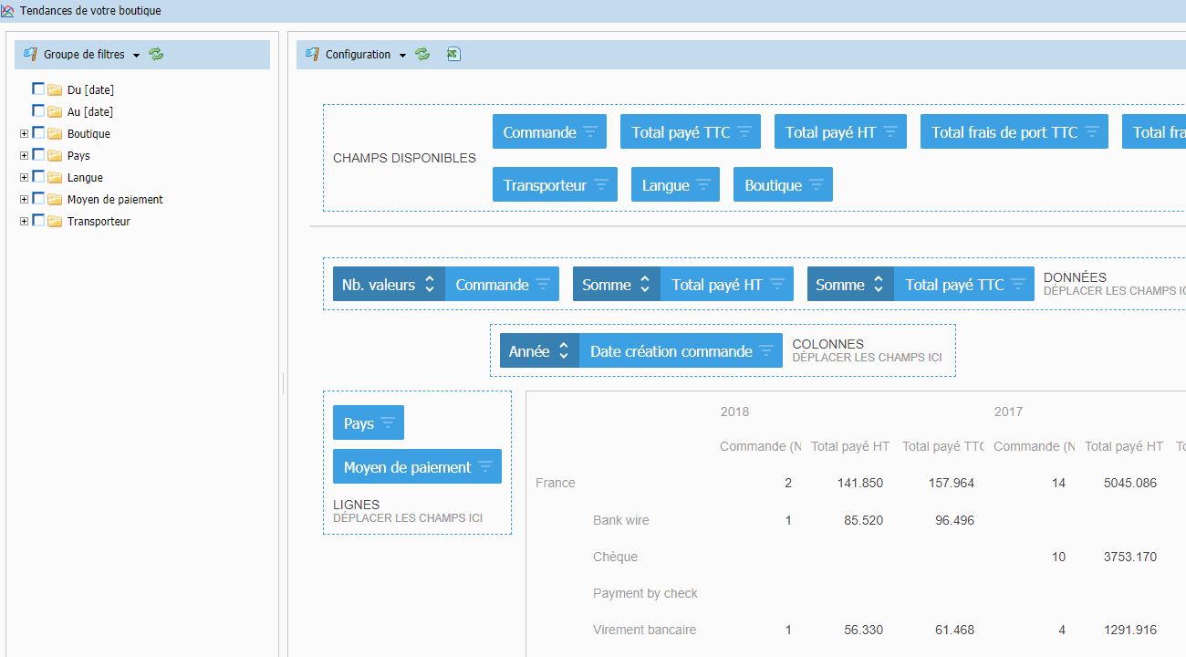 Pour retirer un champ de la table pivot, faites le glisser dans la liste des champs disponibles.