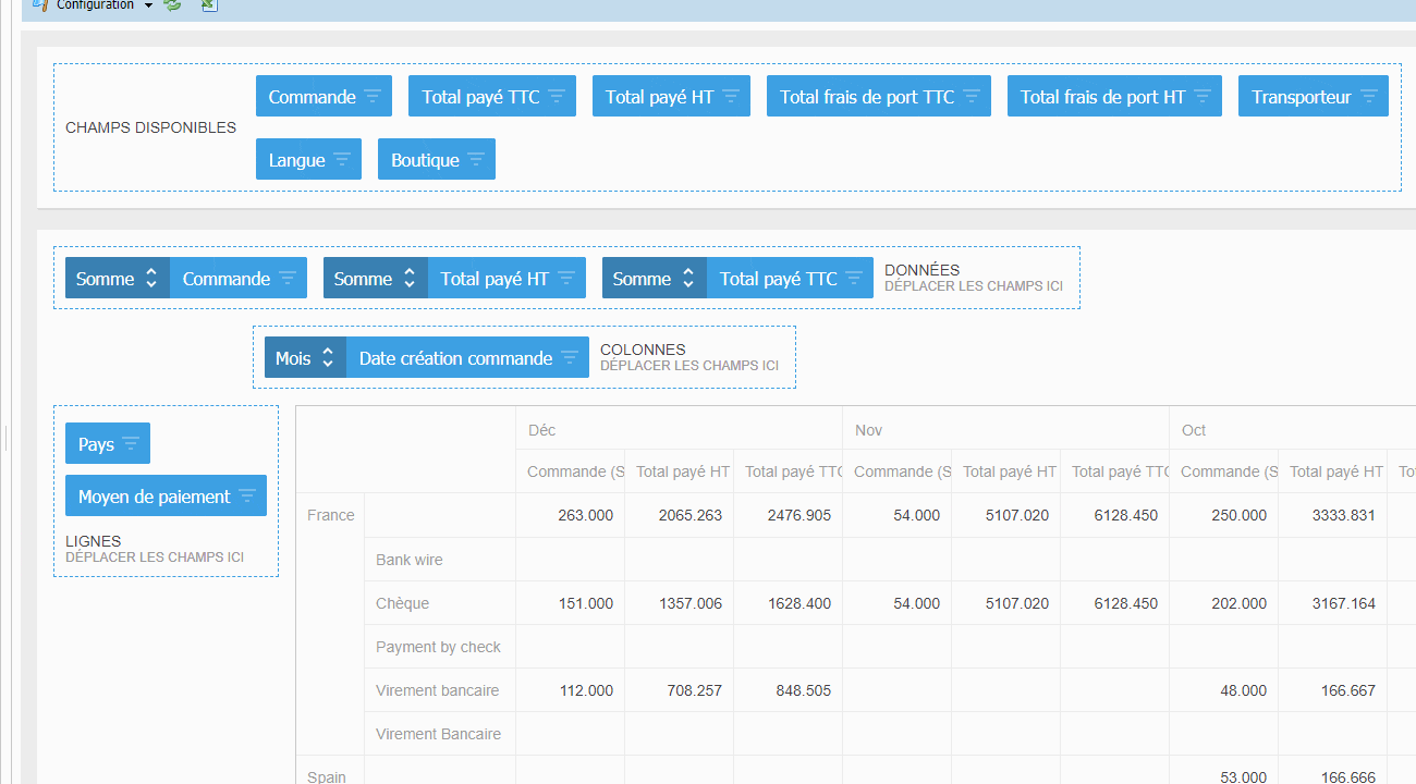 Pour ajouter un champ à la table pivot, faites le simplement glisser dans la zone qui vous intéresse : données, colonnes ou lignes.