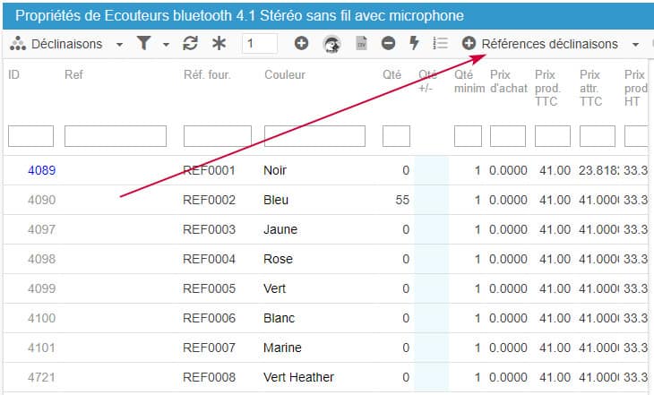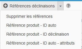 En effet, sur la barre d'outils de la grille des déclinaisons se trouve le générateur de références qui vous permet de générer des références sur vos déclinaisons en un seul clic !
