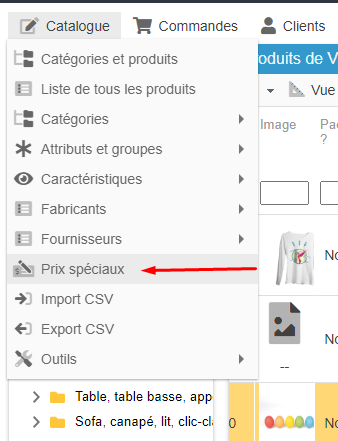 Rendez-vous dans le menu Catalogue > Prix spéciaux :