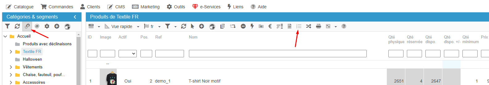 - Lorsque vous êtes dans une vue qui n'affiche pas la colonne Positions, comme les vues Expédition, Prix, SEO, Références et Descriptions.