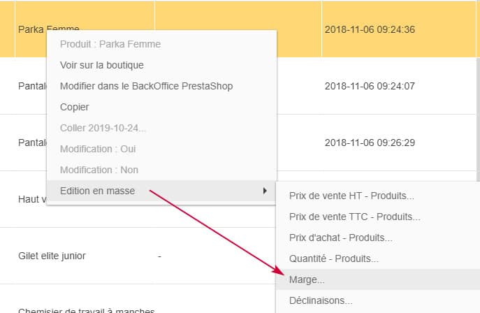 La gestion en masse de Store Commander permet d'appliquer un taux de marge sur plusieurs produits.