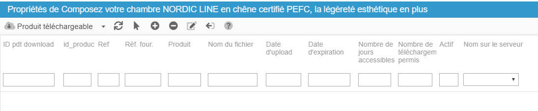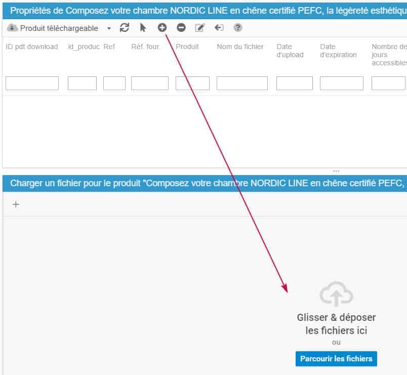 Vous pouvez gérer les Produits Téléchargeables, c'est à dire les produits dématérialisés de PrestaShop, dans la grille du même nom dans la colonne des Propriété, à droite.