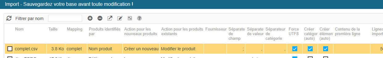 Cette option permet de charger uniquement les champs nécessaires à l'import lors d'une migration de produits d'une boutique vers une autre.