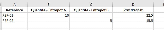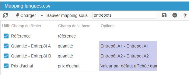 Notez que si le produit ou la déclinaison n'est pas associé à l'entrepôt, le processus d'import associera l'entrepôt automatiquement.