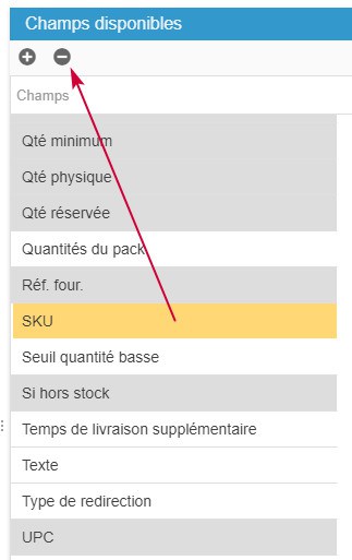 Vous avez modifiez un champ existant, et vous souhaitez le réinitialiser pour le remettre par défaut. Pour cela, sélectionnez-la dans la liste des champs disponibles (colonne de droite) et cliquez sur l'icône